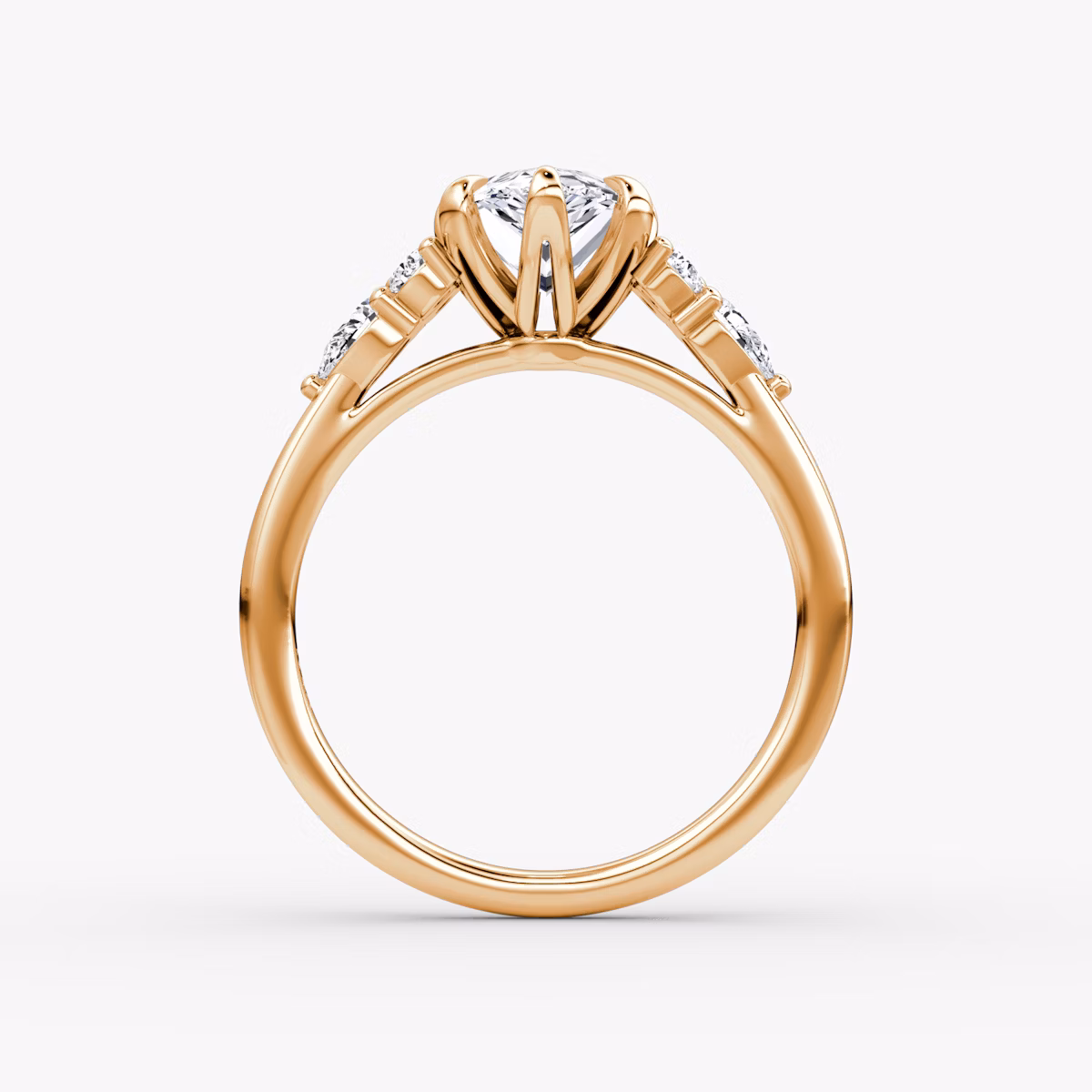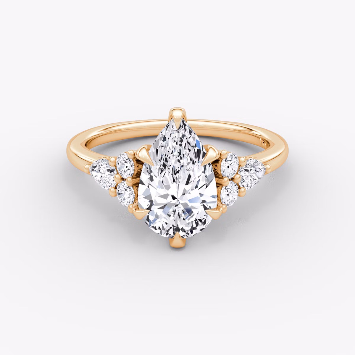 The Pear Cluster Heirloom solitaire in 14k rose gold with a pear diamond