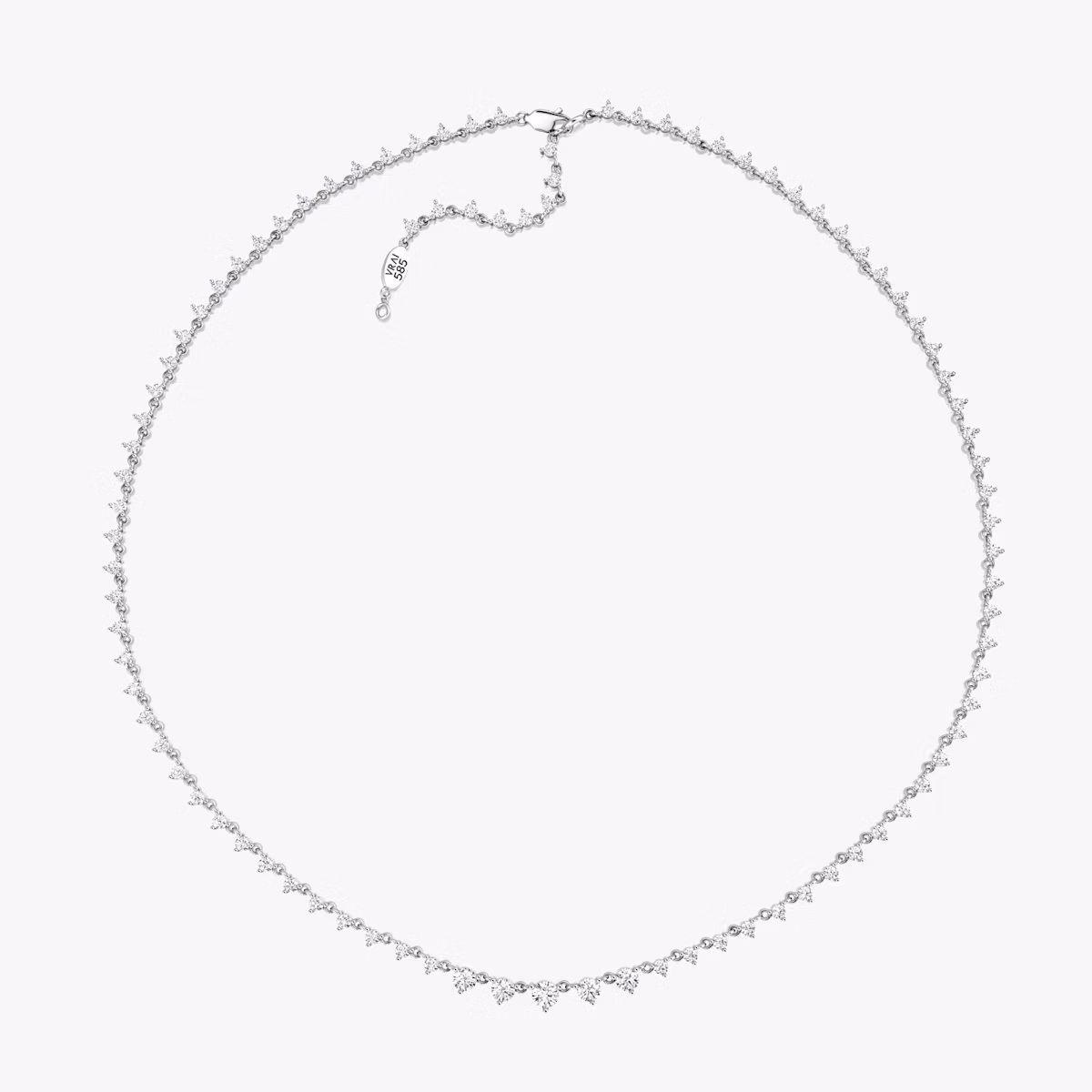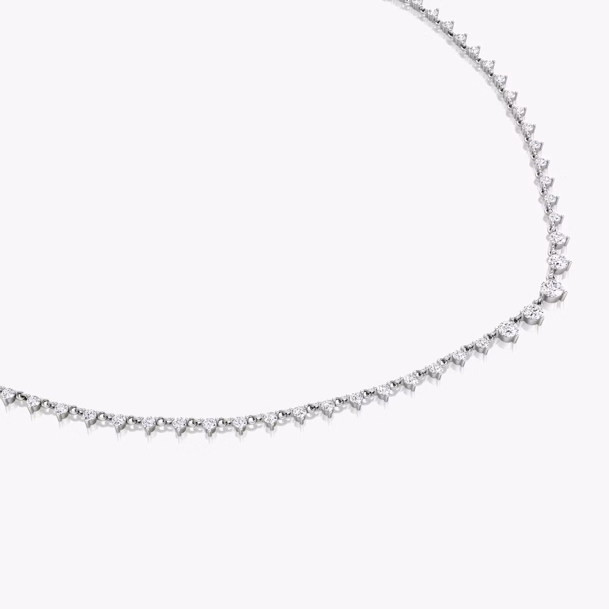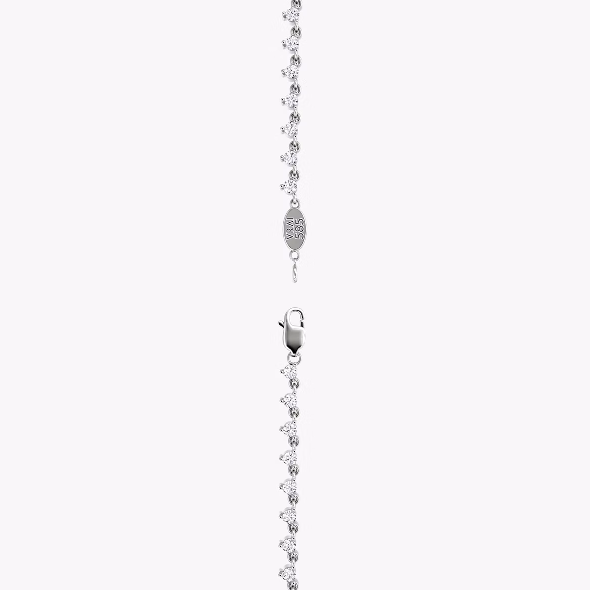 An endless array of graduated Round Brilliant VRAI created diamonds are linked together in a minimal setting that is both modern and romantic. Express your style authentically on your special day and every day by selecting a 14k solid yellow or white gold chain.